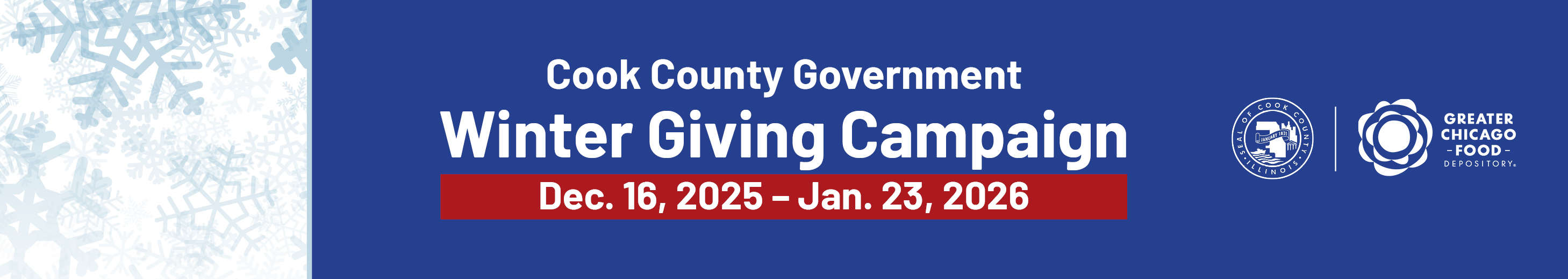 Cook County, in collaboration with the Greater Chicago Food Depository and food pantries across the County, is excited to announce the launch of the Cook County Winter Giving Campaign.